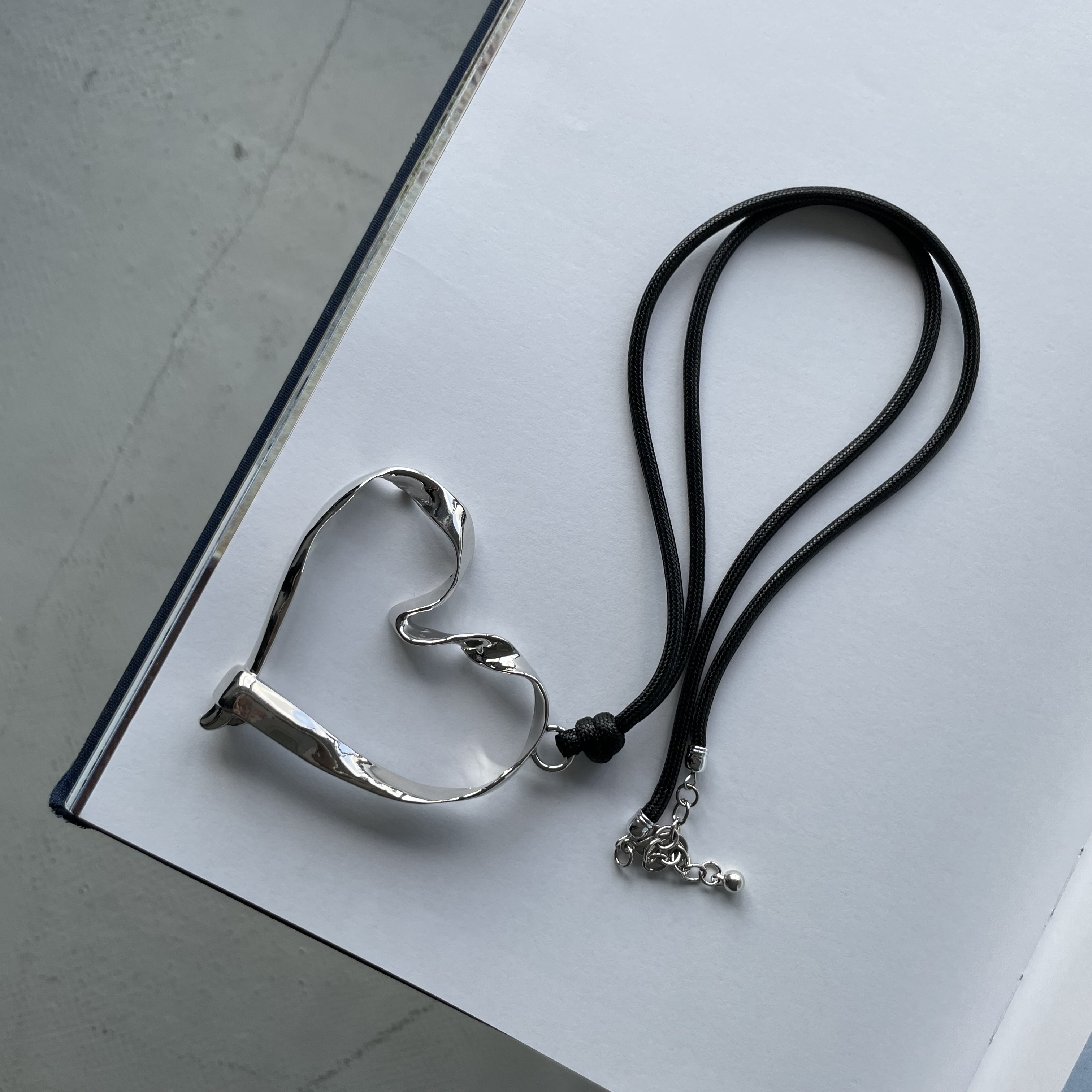 Кулон на шнурке "Big silver heart"
